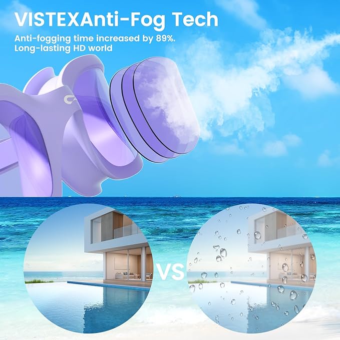 • 【VISTEX ANTI-FOG TECHNOLOGY FOR SWIMMING GOGGLES HD】Our adult swim goggles feature industry-leading VISTEX anti-fog technology, which far exceeds the anti-fog performance of traditional swim goggles with an innovative coating that extends anti-fog time by 89%. Not only does it effectively stop water vapor condensation, but it also maintains its performance after multiple uses, ensuring a clear, fog-free view during every swim