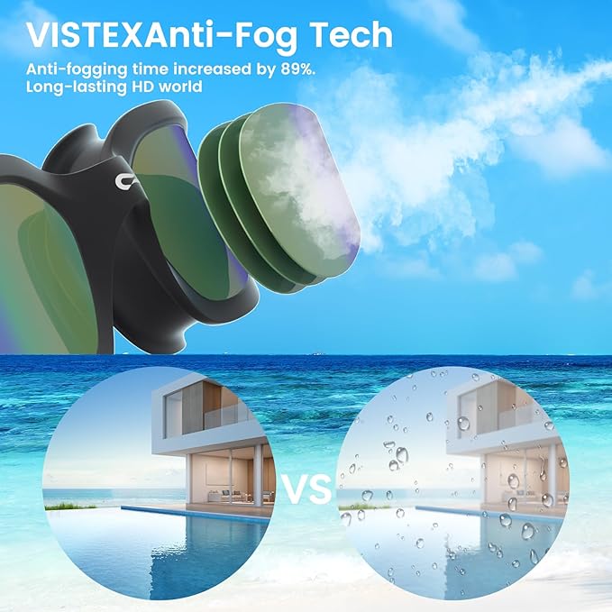 • 【ONE-PIECE FRAME DESIGN FOR SWIM GOGGLES】Our swim goggles have a one-piece frame and soft, durable silicone gasket design, combined with an artificial body science 3D design that allows the goggles to precisely fit the curves of your face and provide an excellent leak-proof seal. It not only stops water from seeping into the goggles, but also reduces the feeling of pressure during prolonged wear and enhances overall durability and comfort