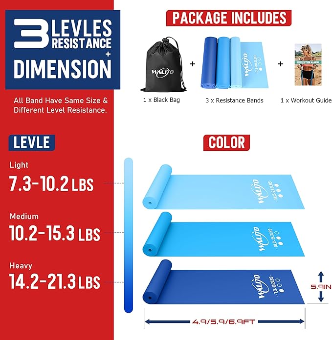 WALITO Resistance Bands for Working Out, Exercise Bands for Women and Men, Workout Bands for Physical Therapy, Stretch, Recovery, Pilates, Rehab, Strength Training and Home Gym