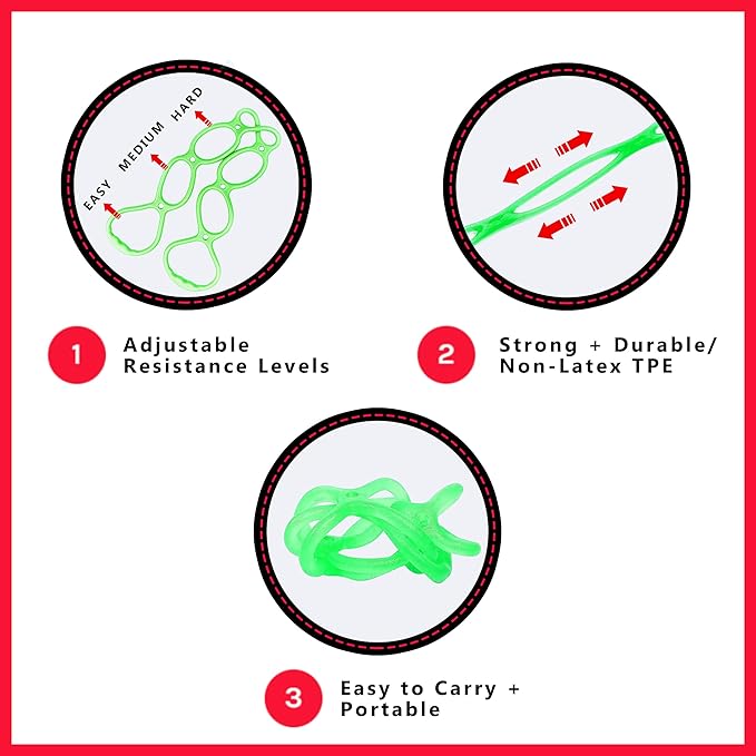 • ADJUSTABLE 7 RING RESISTANCE BANDS: Add multiple levels of resistance to your training and home exercise with these walk bands; our Walk at Home bands for resistance features 7 ring bands for exercise that are used as handles or straps; to adjust the resistance levels of the workout band, you change grip handles for more or less resistance as needed