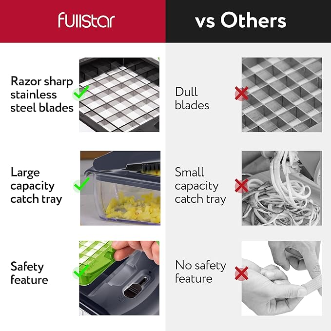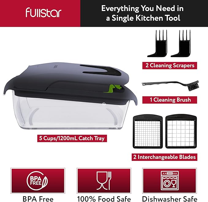 • A Kitchen Essential - Whether you're a novice cook or a seasoned pro, the Fullstar Food Chopper is a must-have in any kitchen. It's versatile and easy to use. Please read the instruction manual provided with the Fullstar food chopper closely before use.