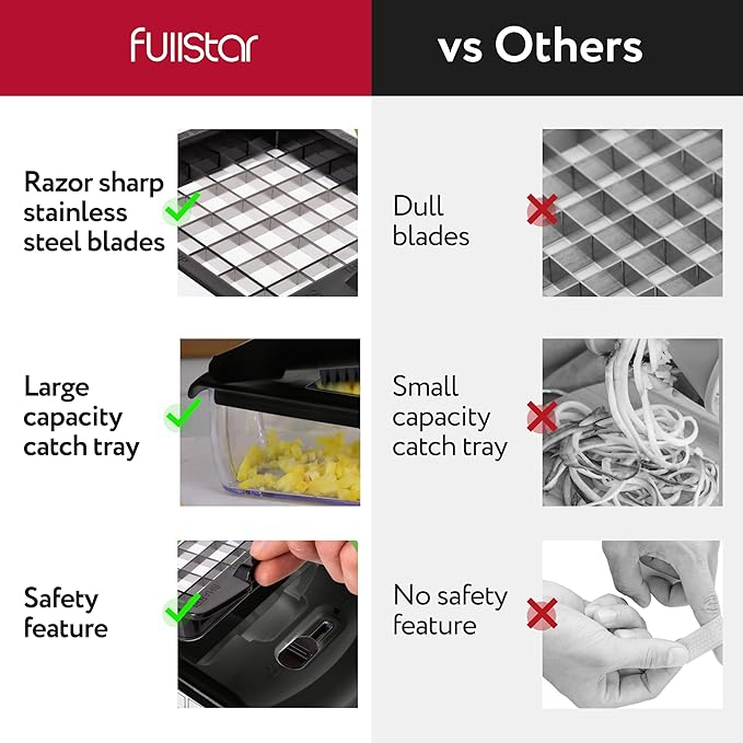 • A Kitchen Essential - Whether you're a novice cook or a seasoned pro, the Fullstar Food Chopper is a must-have in any kitchen. It's versatile and easy to use. Please read the instruction manual provided with the Fullstar food chopper closely before use.