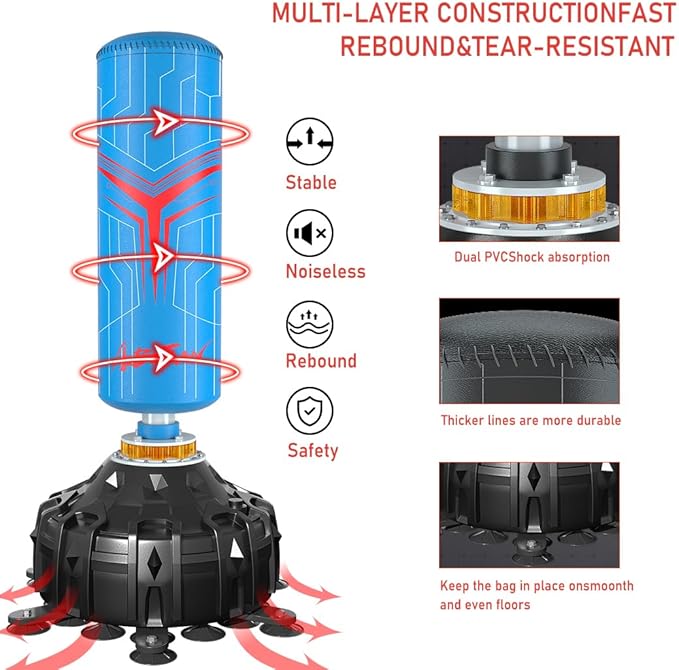 Freestanding Punching Bag with Boxing Gloves, Boxing Bag with Suction Cup Base for Adult Teens-Standing Kickboxing Bag for Home Office Gym