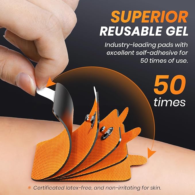 • Multi-shape Pads Combination: Experience targeted relief with 2 sizes of pads of the stim machine. Small pads target areas such as the neck, knee, and ankle; larger pads focus on the shoulders, waist, and thighs. These upgraded pads are made of latex-free gel for more than 50 times of use without skin irritation and are fully compliant with CE, RoHS, and FDA standards.