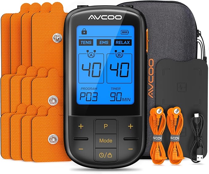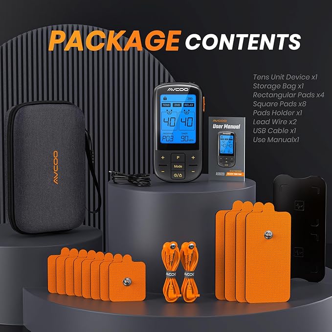• Drug-free to Relax & Recover: AVCOO 3-in-1 multifunctional TENS machine combines TENS, EMS, and RELAX 3 therapies in one. The muscle stimulator can help relieve muscle soreness and pain in the elbow, shoulders, back, knees, arms, legs, sciatica, and pelvic zone. If you have chronic or acute pain, just try AVCOO TENS massager for relief