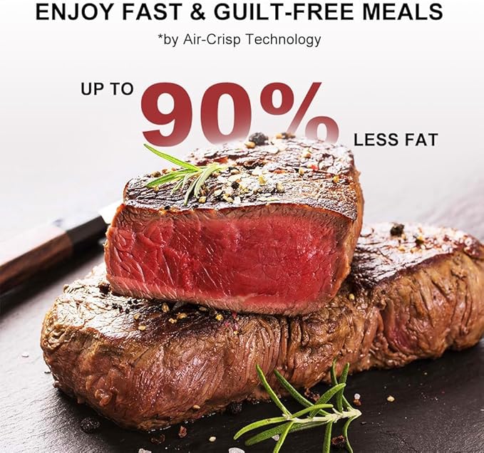 • HEALTHIEST WAY TO FRY: Advanced AIR-CRISP TECHNOLOGY removes up to 90% of fat, and allows airflow for a perfect golden finish and crispy, tender results every time! Now enjoy guilt-free food and all of the flavor.