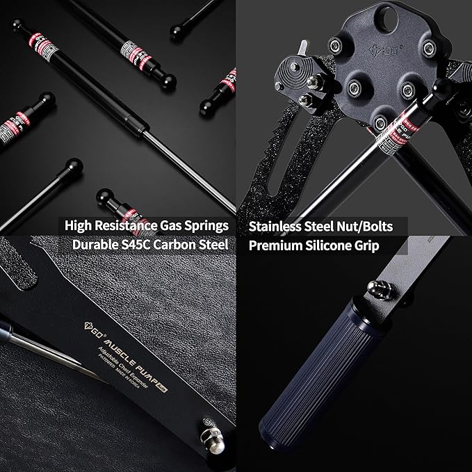 • [Smooth Contraction and Compression Resistance] GD MUSCLE PUMP features a unique gas spring technology in its chest expander. Unlike traditional coil springs, the gas spring provides a smooth and gradual increase in resistance, minimizing the risk of sudden tension release. You can feel consistent resistance throughout the entire range of motion, ensuring a safe and effective workout experience.