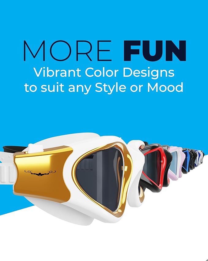 • [[ SUPERIOR DESIGN ]] - Unlike other single strap swimming goggles, our split Y-shaped strap design has no trouble in ensuring a fixed position of the goggles on the head even during the most vigorous swimming. Adjusting the size of the strap is easier, faster and can be done even during swimming with our one-click buckle system