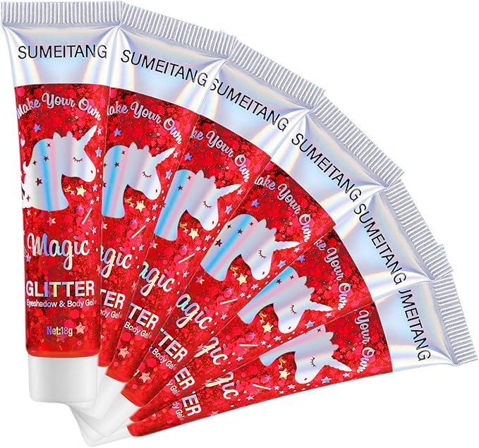 • Stunning Holographic Shades: Elevate your glow with six stunning holographic body glitter gels in White, Silver, Gold, Pink, Blue, and Red. Each shade shifts colors at every angle, creating a mesmerizing, multifaceted shimmer