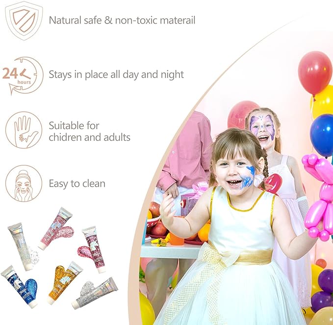 • Safe for All Skin Types: Made with 100% safe, natural ingredients, our glitter gel is vegan, cruelty-free, and hypoallergenic, gentle on your skin, and perfect for all ages, including kids
