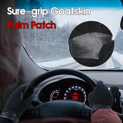HANDLANDY Winter Gloves for Men Women, Thermal Gloves for Cold Weather Driving Cycling Ski Outdoor, Insulated Leather Work Gloves (Medium, Black)
