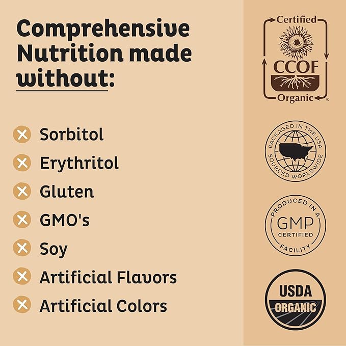 • Responsibly Sourced: Nearly every ingredient is certified organic and free of gluten, dairy, soy, hormones, artificial sweeteners, colors, and GMOs. Made with USDA and CCOF certified ingredients.