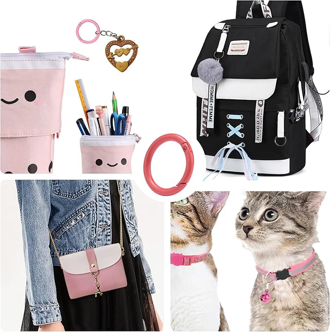 • Creative Matching: Round keyring clip can decorate and replace most items, such as key ring, pet collar, jewelry clasps, purse rings, handbag, shoulder bag, strap, exercise band, key chain clip and outdoor paracord keychain lanyard or match with your desired hanging crafts or decorations, round carabiner clip is a great DIY accessory, can be given as a gift to a friend