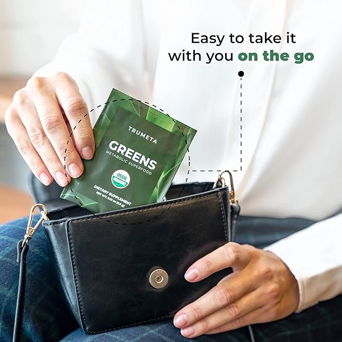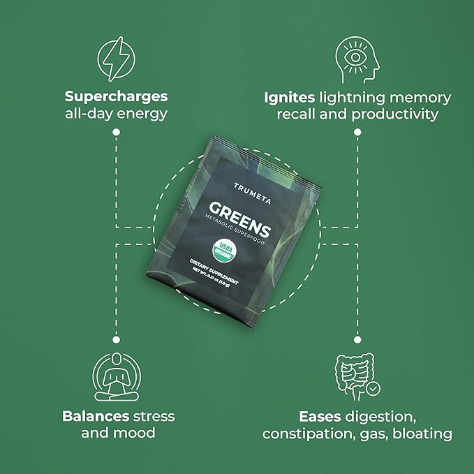 • 100% ORGANIC FORMULA - Trumeta greens powder packets is certified 100% organic by the USDA. And with 33 delicious fruits and vegetables, our greens and reds superfood powder tastes amazing! Plus, our organic super greens powder dissolves in water in seconds, so it's easy and convenient to take on the go.