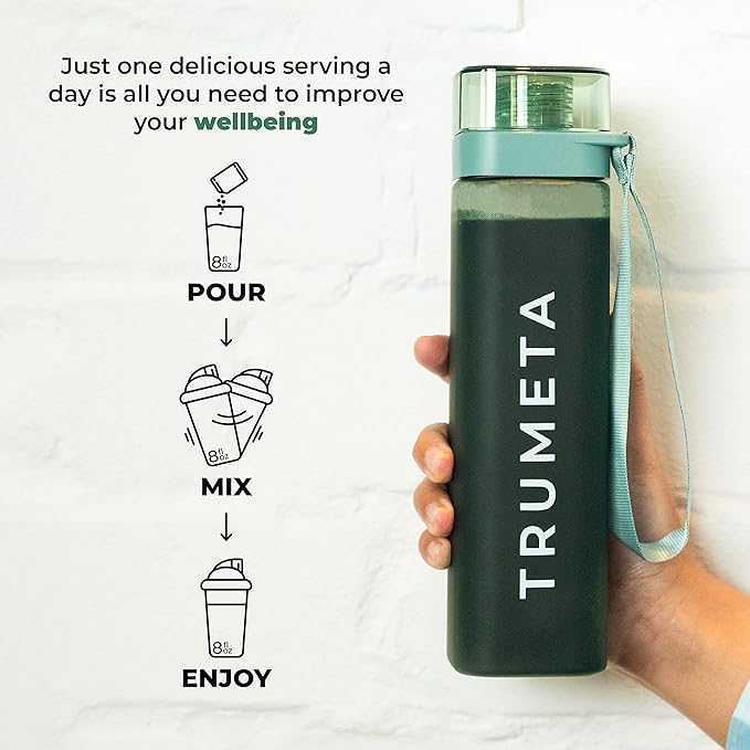 • SHARPER THINKING & MEMORY - Trumeta greens travel packs contain pure, organic pomegranate juice, to support enhanced brain function and focus. It also has a hefty dose of spirulina protein powder, which is chock full of brain-boosting omega-3 fatty acids.