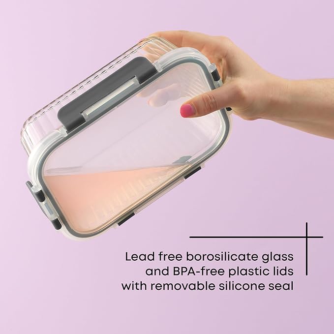 • AIRTIGHT FRESHNESS: These airtight containers feature a removable silicone seal and secure hinge clips, so you can use them as a food container without odors or air getting in or out! They're also leakproof glass lunch containers, so fill them as soup containers in your lunch bag without fear!