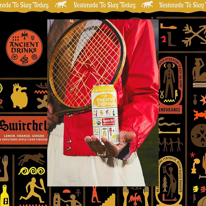 ANCIENT DRINKS Apple Cider Vinegar Beverage with Electrolytes, Vitamins, & Probiotics, Organic, Super-Hydrating Sports Drink - Switchel (Citrus & Ginger) - 16 fl oz (12 cans)