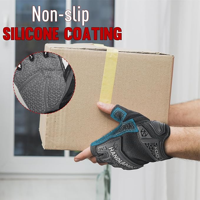 • Upgraded Padded Work Gloves with Grip for Enough Grip Power: Tired of tools slipping out of your hand? You need these grippy moving gloves! No more boxes slide out of your hands! The silicon coating at the palm provides a secure grip, you can easily pick things up. Cushioned enough in the palms that they provide good impact cushioning when doing repetitive tasks like hammering/ jack-hammering, good protection when moving lumber piles, etc.