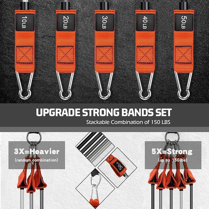 • Versatile Resistance Bands: VEICK resistance bands set come with 5 different resistance levels: 10lbs, 20lbs, 30lbs, 40lbs and 50lbs in 5 different colors. You can use these workout bands independently or in any combination with a maximum resistance level of 150lbs