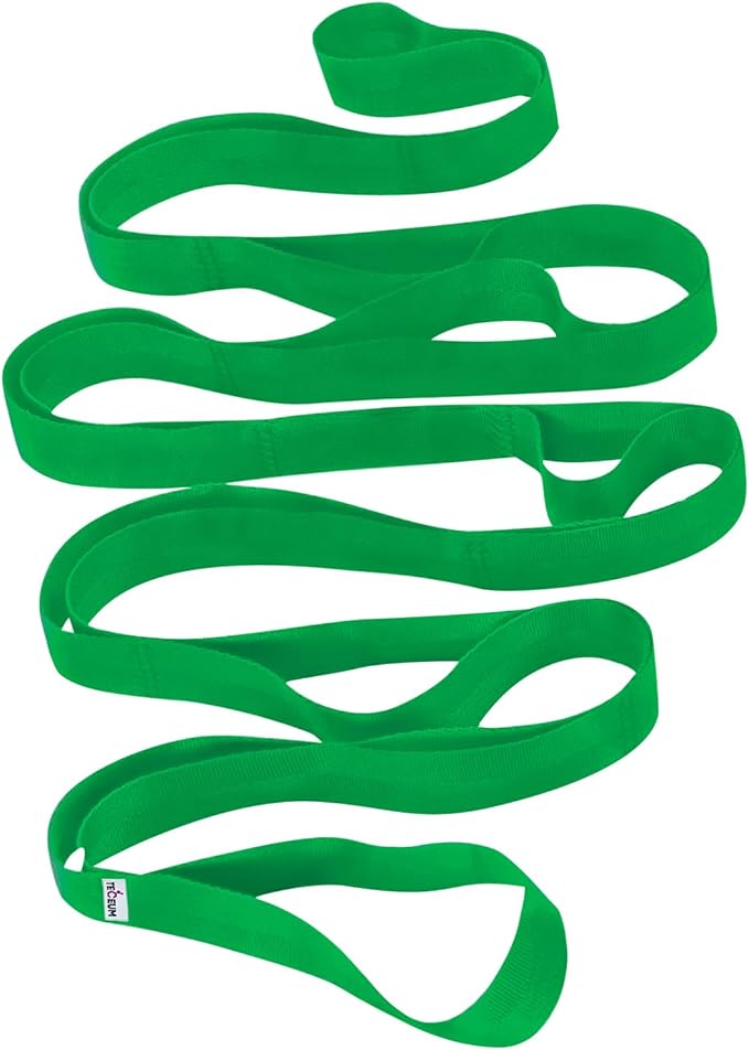• STRETCHING STRAP. Color: GREEN. Material: POLYCOTTON. Width: 1.5 IN. Length: 79 IN. 10 Loops. Non-elastic. Superior Non-slip Grip.
