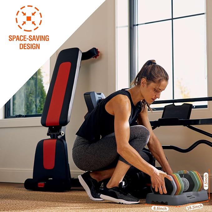 • 【Save Money & Space】It is great for your upper body workouts, which helps tone and sculpt your arms, shoulders and also strengthen your muscles. The dumbbell also come with a tray for secure storage of your units, without devoting too much floor space, and keep your home gym well organized.