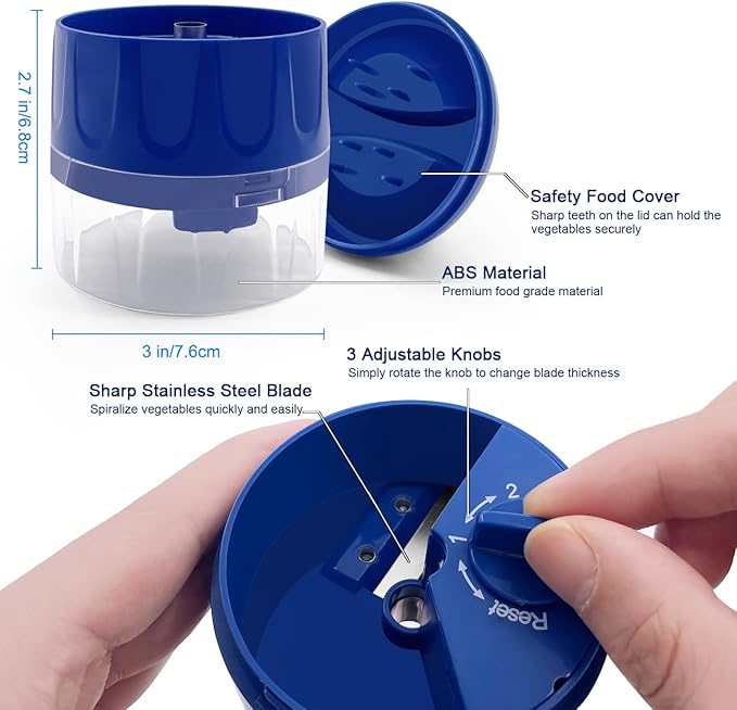 3 in 1 Vegetable Spiralizer Slicer, Adjustable Zucchini Carrot Noodle Maker, Cucumber Spiral Cutter, Easy to Use Kitchen Tool(Blue)