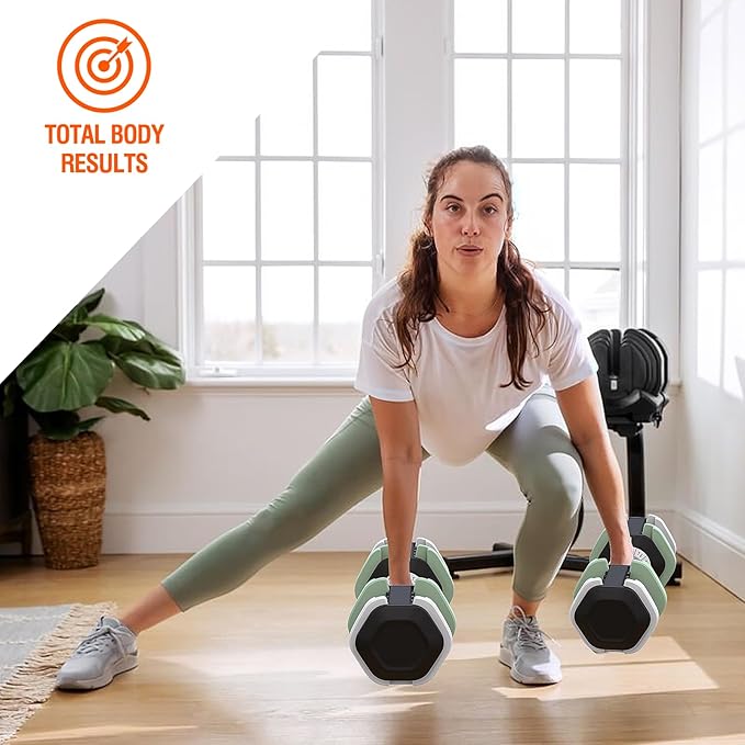 • 🥇【High Quality & Advanced Technology】Dumbbell's weight plate covered with frosted powder coating, which make it hardly abrasion and don't have foul smell. Using with dumbbell tray, enjoy the smoothly training process. Durable handle combine with anti-slip texture, which would not rusty and provide more safty.