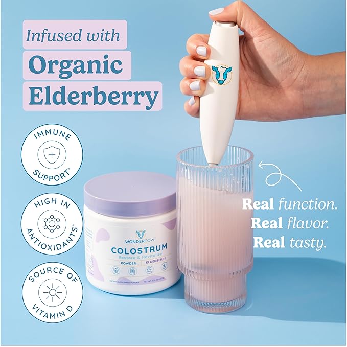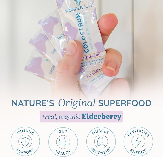 Colostrum Supplement Powder for Gut Health, Immune Support, Muscle Recovery & Wellness | Natural IgG Pure Whole Bovine Colostrum Superfood, Elderberry, 30 Servings