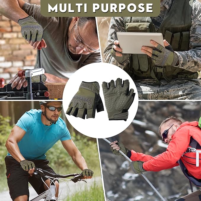 HANDLANDY Tactical Fingerless Impact Gloves for Men, Padded Grip Half Finger Work Gloves, Utility Trucker Driver Gloves (Army Green, X-Large (Pack of 1))