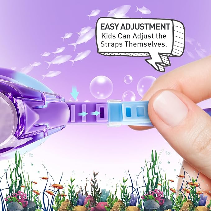 • 【Easy Adjustment:】The quick adjust straps can be easily adjusted by kids or parents. Just need to press the clasp and pull the strap to the proper length. The elastic head strap can stretch strongly without breaking and and it extremely fits most kids' heads. Children can stand on their own feet and adjust the strap themselves.