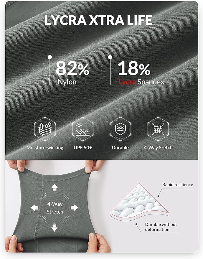 • Upgraded Material-3.0: We've upgraded our product with a super stretchy Lycra fabric that can stretch freely and quickly return to its original length, allowing you to embrace the freedom of movement.