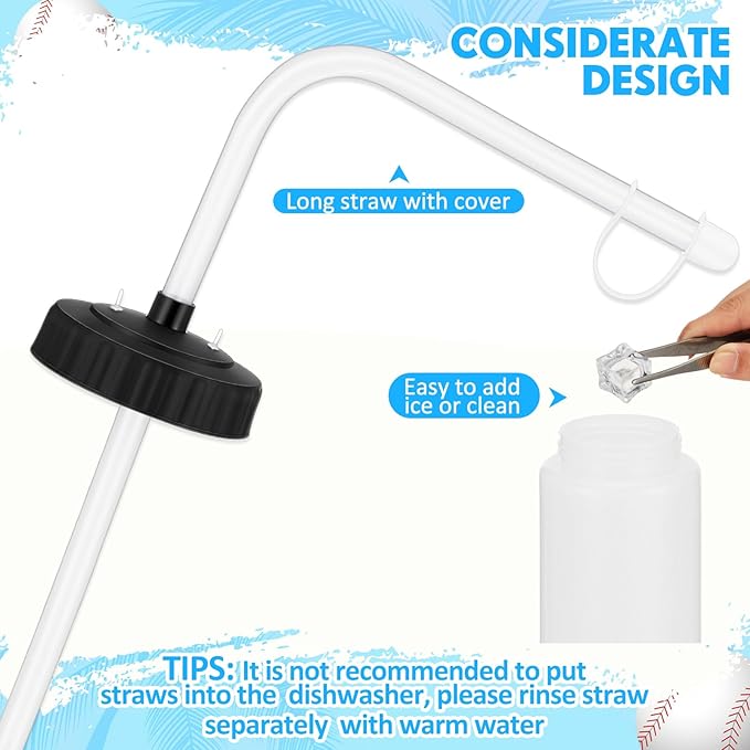 • Ideal for Sports: each package includes 4 pcs of our 1 liter hockey water bottle with straw and 8 straw lids for easy placing, which will be a great deal whether you're buying for a family, a team, or wanting to have spare bottles on hand; And the large capacity can help you hydrate while exercising; Please note that long distance transportation may cause the ring of the straw cap to break without affecting normal use