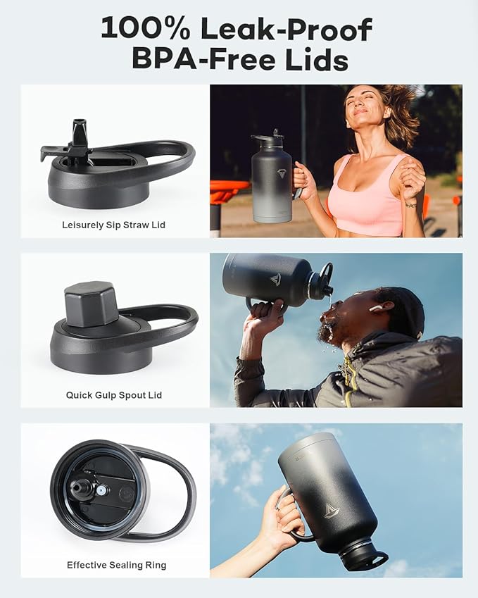 • No Leakage, No Spills: Our stainless steel water bottles comes with a dust-proof flip straw lid and a spill-free spout lid, both 100% leak-proof and spill-proof. The two lids showcase a vibrant color-contrast design, harmonizing with the bottle body's color and adding an extra touch of allure.