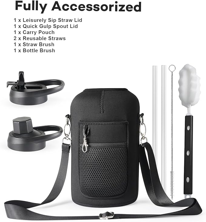 • Hassle-Free Experience: Included with 2 lids, 2 straws, 1 straw brush, 1 bottle brush, and 1 carrying pouch, Topre water jug is fully accessorized to handle any tricky situations. Just choose your style from three capacities (40/64/128).