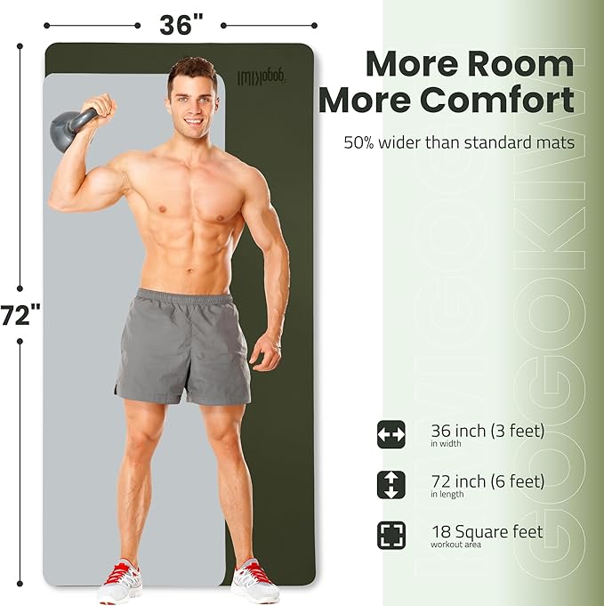 • 【Extra Space for Extra Comfort】 With a size of 72x36 inches, our extra large yoga mat is 50% wider than traditional mats, offering ample space for men and plus-size women to move freely and comfortably during their workout.