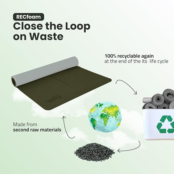 • 【Eco-friendly & Recyclable】Crafted from 100% recyclable premium Recfoam, our large exercise mat is not only durable but also kind to the environment, ensuring no harm to our planet during its lifecycle.