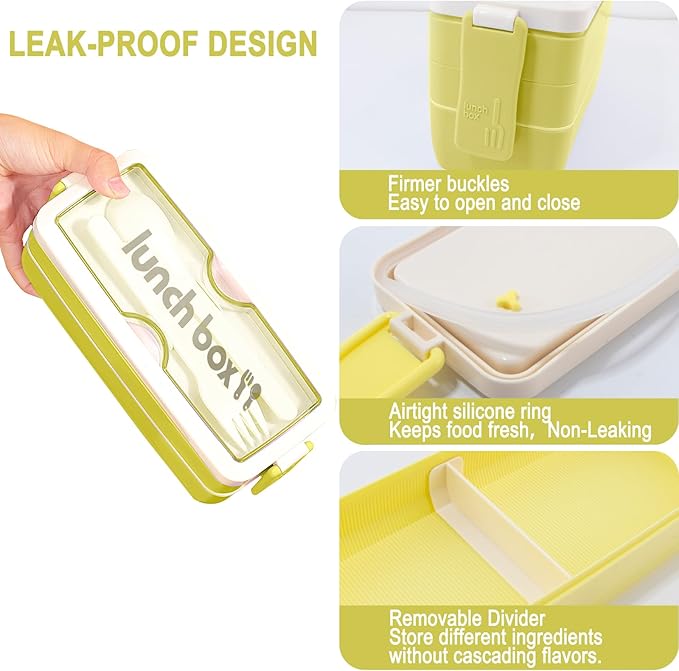 • 【What You Get】A simple 3-layer stackable lunch box, embedded forks and spoons and permanent technical support, if you have any questions, please feel free to contact us.