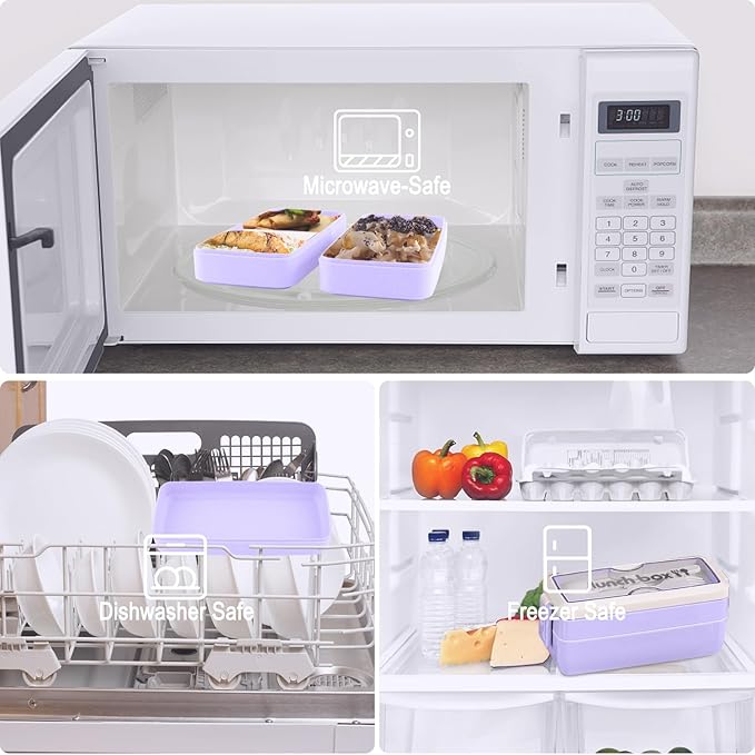 • 【3 Layers Stackable Lunch Containers】 Split your food between 3 divided containers. Intended for different foods such as meat, sandwiches, salad and other snacks. Increased flexibility to separate hot and cold foods. To make meals more creative, whether you’re trying to portion control or set other dietary goals.