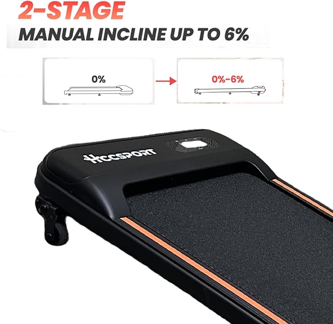 • [Adjustable Incline] Boost your exercise routine with this compact treadmill, offering a convenient 6% manual incline adjustment. Even during office hours, this incline adds a level of intensity to your walk, helping to make your workout more engaging and effective.