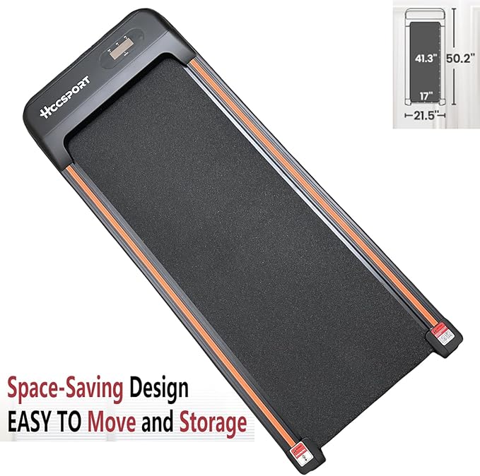• [Easy Setup and Convenient Storage] This portable treadmill is lightweight and arrives fully assembled, requiring no setup. With two front wheels, it’s easy to move and store. Its compact design allows it to be tucked away under a bed, beside a wall, or even placed on a sofa. Plus, the treadmill features a dedicated spot for the remote control, keeping it conveniently within reach.
