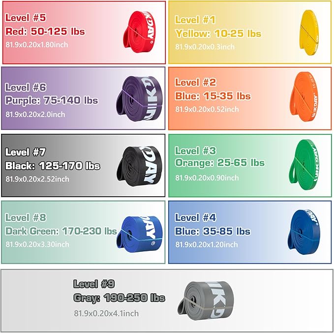 • [Multifunctional Exercise Bands]--Our long resistance bands, ideal for pull ups, are perfect for mastering pull-ups, ring dips, and muscle ups. These pull-up bands assistance bands are versatile for men and women, facilitating body resistance training and physical therapy to strengthen ligaments or muscle tears. They're great for exercising arms, back, legs, and buttocks, serving as stretch bands, gym bands.