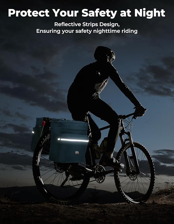 • Large 34L Capacity: This KEMIMOTO pannier bike bags has been upgraded to a large capacity of 17L per bag, and the total capacity of 2 bags is UP to 34L. Includes 2 main compartments for each bag. Plus the 2 pockets on the outside, ideal storage for ebike accessories, daily essentials, biking gear. Ideal for grocery, commuting, and outdoor trips