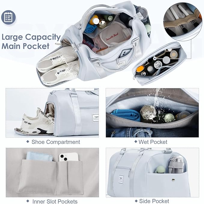 • 𝐖𝐞𝐭 𝐏𝐨𝐜𝐤𝐞𝐭 & 𝐒𝐡𝐨𝐞 𝐂𝐨𝐦𝐩𝐚𝐫𝐭𝐦𝐞𝐧𝐭: The wet pocket is perfect for storing sweaty clothes or towels after your workout; The shoe compartment allows you to easily store and access your gym shoes without dirtying the main compartment