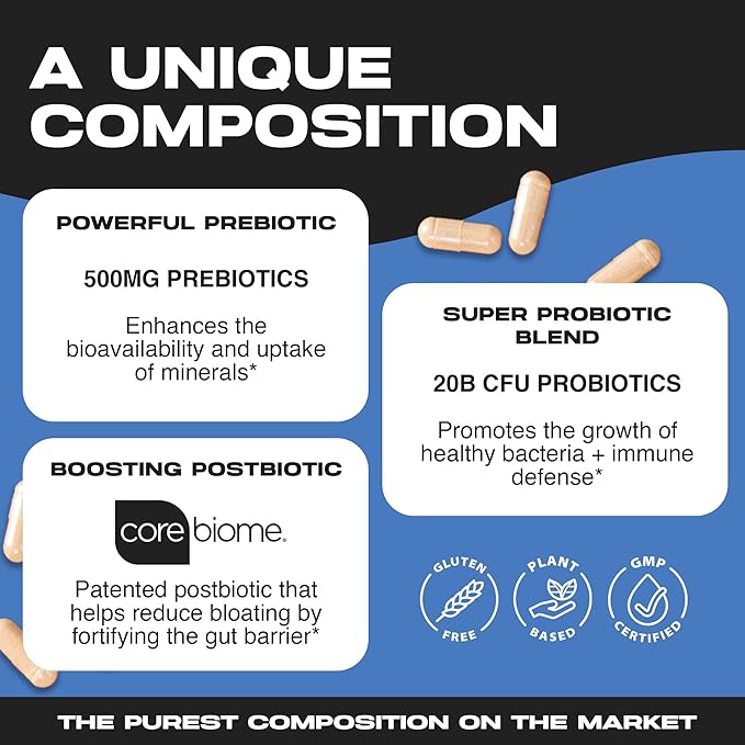 • Maintain Balanced Gut Flora and Wellness: A powerful blend of 20 billion CFUs of probiotics and 500mg of prebiotics works synergistically to balance gut flora, promoting healthy digestion and immune function.