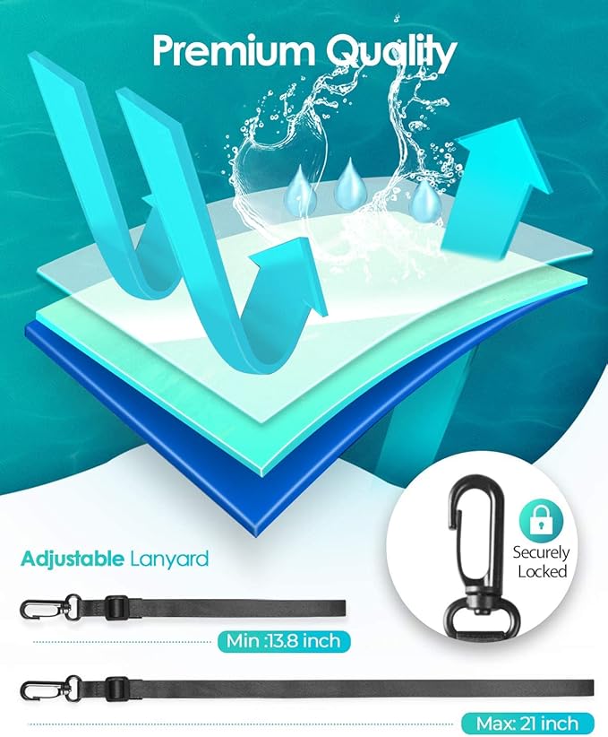• IPX8 Waterproof Protection: Certified for depths, the Hiearcool phone pouch's triple-seal barrier defends against water, sand, and dust. A must-have for beach vacation to ensure your phone stays dry