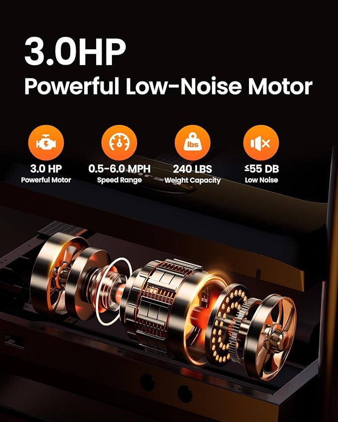 • COMFORTABLE RUNNING EXPERIENCE: This treadmill is equipped with powerful 3.0 HP low-noise motor. It not just holds 240 LBS capacity, but also revolves up to 6.0 MPH, suitable for most people. The running belt 39.4'' x 15'' of the treadmill for home is made of 5-layer non-slip textured material, extremely flexible and comfortable. 4 silicone and 6 built-in shock absorbers of the foldable treadmill form the scientific shock absorper system so as to provide maximum protection to joints and ankles