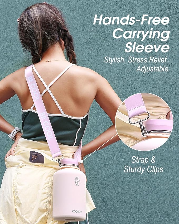 • Unleash Your Style, Hands-Free: Elevate your fashion game with this half gallon water bottle's exquisite adjustable shoulder straps and eye-catching design. Whether worn crossbody, single-shoulder, or hand-held, it's a statement piece that complements your vibrant personality.
