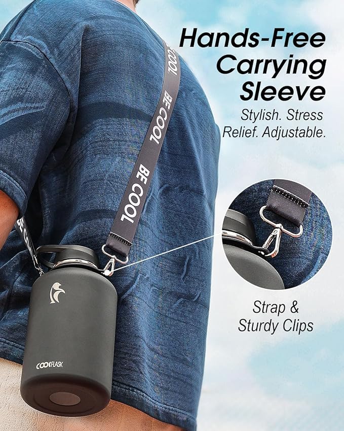 • Unleash Your Style, Hands-Free: Elevate your fashion game with this half gallon water bottle's exquisite adjustable shoulder straps and eye-catching design. Whether worn crossbody, single-shoulder, or hand-held, it's a statement piece that complements your vibrant personality.