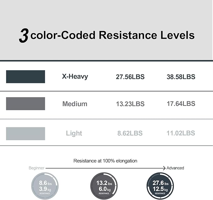 • 【Premium Quality】 3 Exercise Bands with Color-coded Resistance Levels (Light, Medium, X-Heavy), Made from Upgraded Rubber Material, Not Sticky Material, Eco-Friendly, Non-Toxic, Latex-Free, People with Latex Allergie can also Use It Safely.