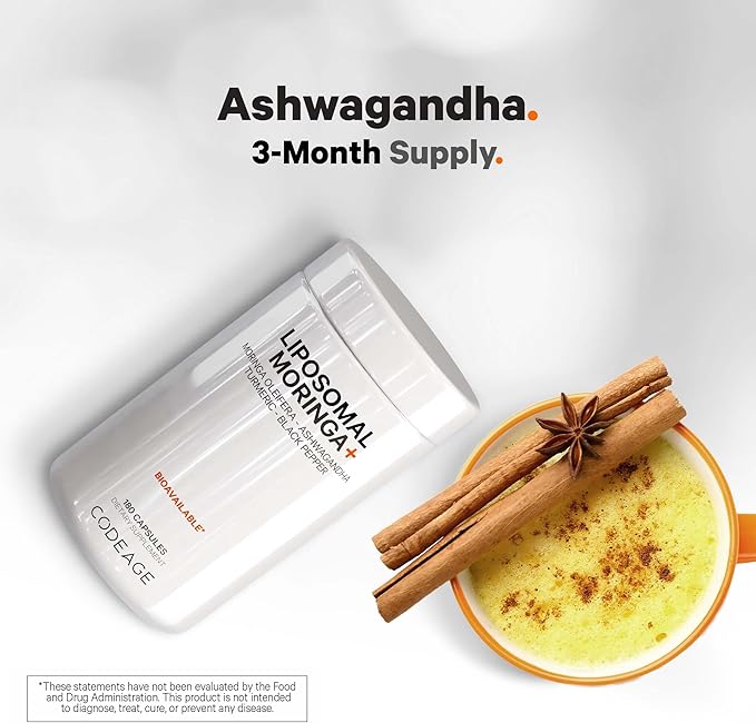 Codeage Liposomal Moringa+ Supplement, 400mg Moringa 50:1 Extract - 20,000mg Moringa Oleifera Leaf Equivalent - Turmeric, Ashwagandha, Black Pepper, 3-Month Supply, Vegan Moringa Powder - 180 Capsules